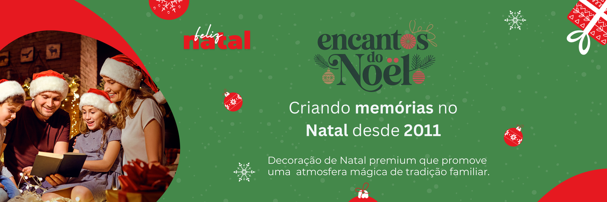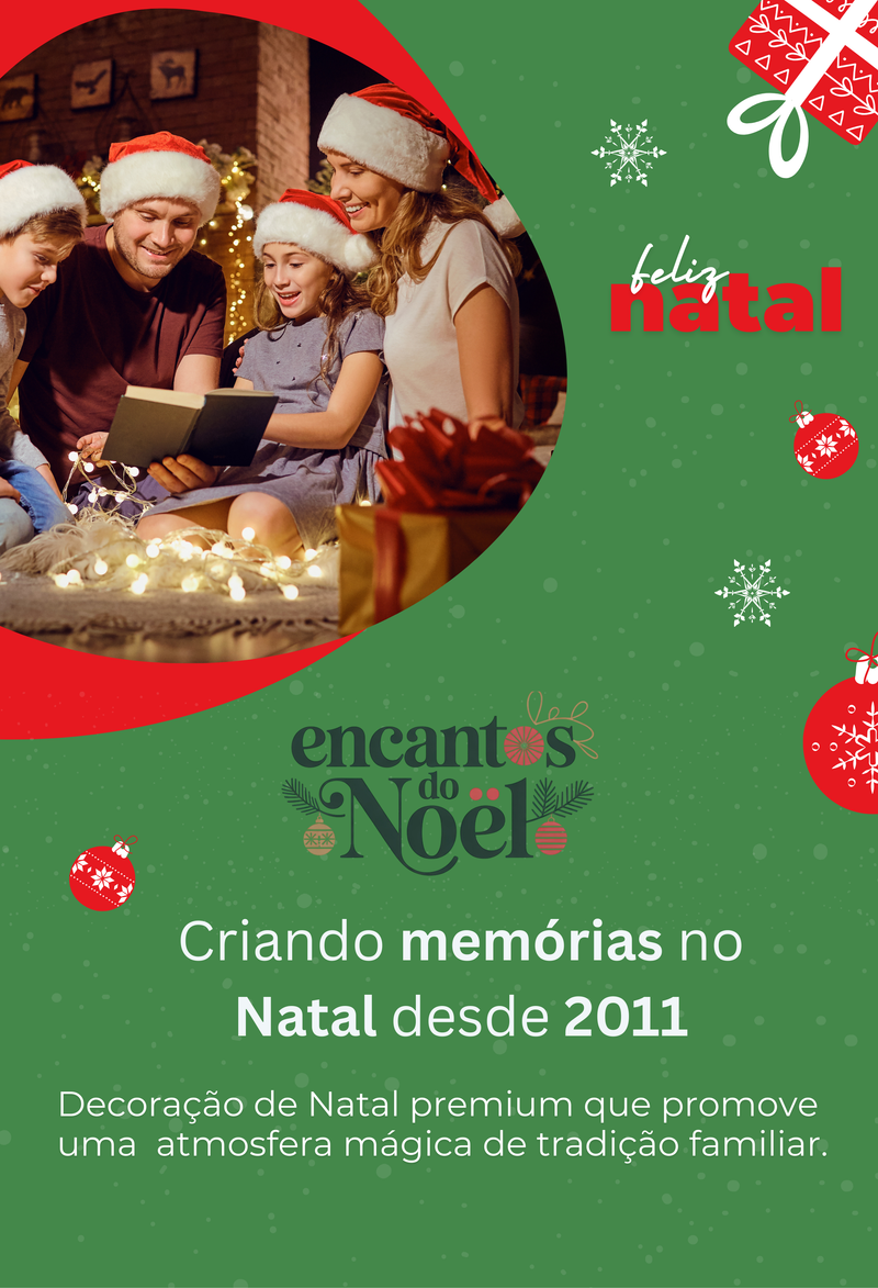 Desde 2011, o Encantos do Noël transforma cada Natal em um momento mágico e inesquecível. Somos apaixonados por criar ambientes encantadores com artigos natalinos de alta qualidade, que trazem o brilho, a emoção e o aconchego dessa época tão especial. Aqui, cada detalhe é pensado para que o espírito natalino esteja presente em cada canto do seu lar ou empresa.